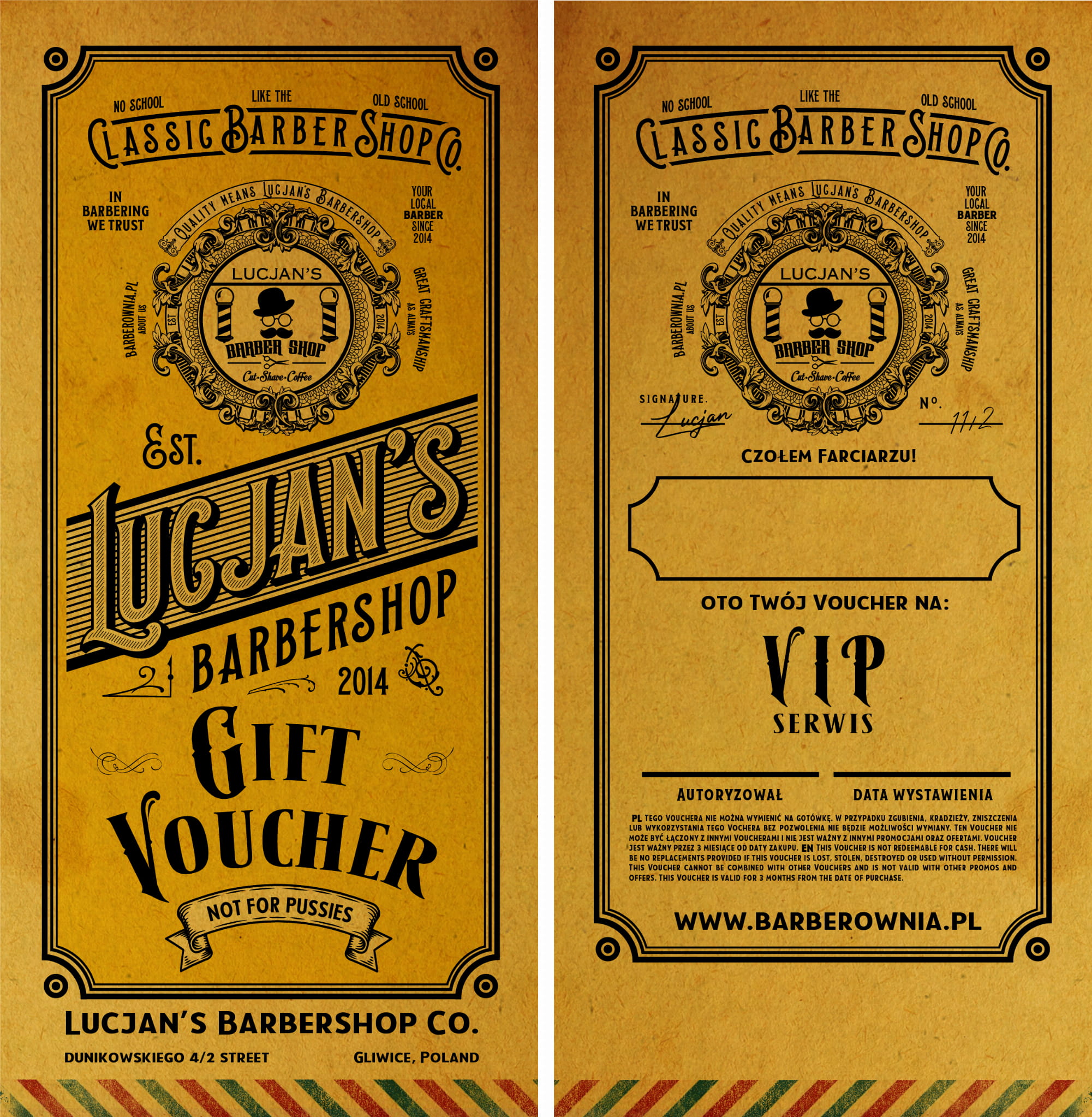 Voucher uprawnia do skorzystania z wybranej usługi w Lucjan’s Barbershop.